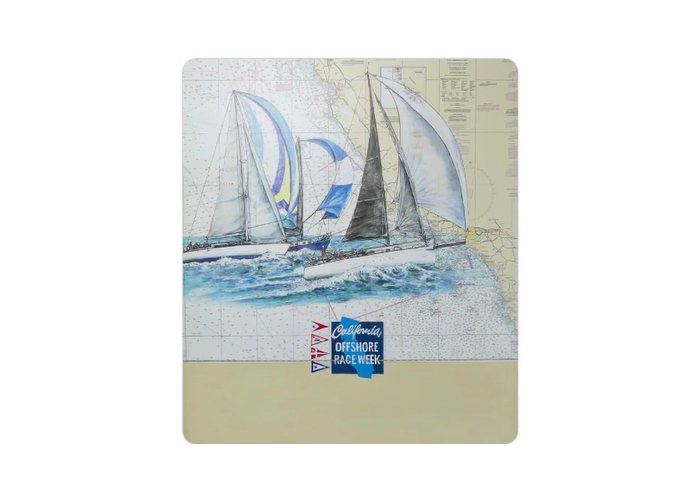 The Offshore Race Week series started in 2016, and now it has a new perpetual trophy, donated by Denise Kramer of Sailboat Artwork. Denise has donated a custom painting of a Cal 40, Santa Cruz 50 and J/125, some of the staples of this coastal race series. Past winners honored on the trophy are Santa Cruz 50 Horizon, Santa Cruz 70 Catapult, Santa Cruz 52 Lucky Duck, and J/125 Velvet Hammer. The beautiful trophy will be on display at San Diego Yacht Club where the annual CORW series trophies are awarded after the SoCal 300. Denise was part of the Velvet Hammer crew that won the series in 2019. @sailboatartwork